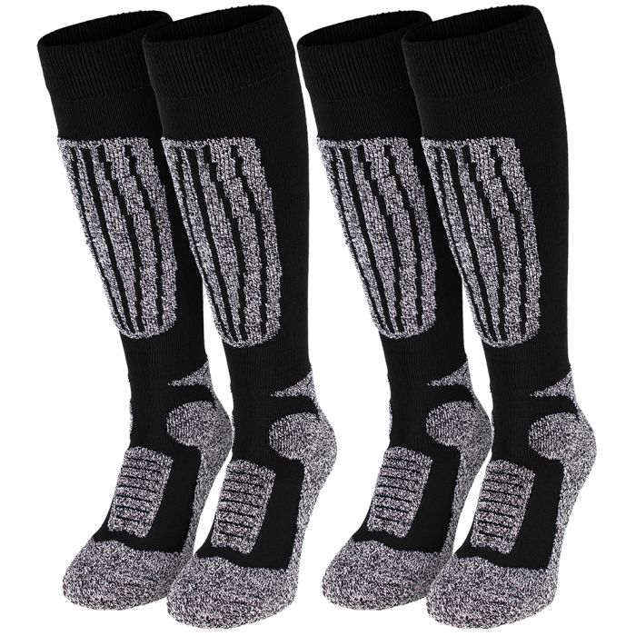 Deze prachtige functionele sokken in een lange vorm met een comfortabele tailleband zijn dankzij hun vulling ideaal voor skischoenen. De extra vulling op het scheenbeen, de kuit, de enkel en de voet voorkomt drukpunten van de laarzen. Of het nu gaat om skiën, snowboarden, voor de vrije tijd, als werksokken of voor andere sporten: de functionele zones bieden veel comfort en een goed voetklimaat. De hoogwaardige materiaalmix met wolgehalte voelt zeer comfortabel aan op de huid en houdt je warm in de winter. De kniekousen zijn verkrijgbaar in verschillende maten en kleuren. De comfortabele wellnesszool van badstof rondt deze geweldige eigenschappen af.