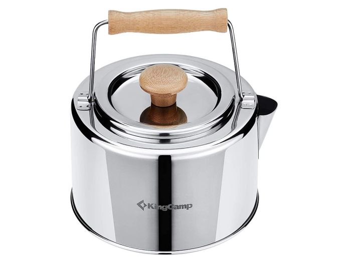 Ervaar het plezier van thee of koffie bij het kampvuur met de KingCamp waterkoker met bamboe handvat - de perfecte aanvulling op je buitenavontuur!