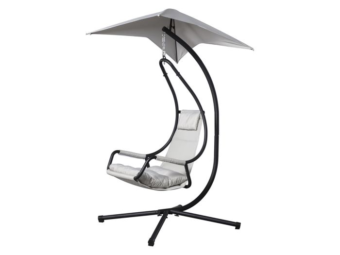 De SenS-Line Hangstoel Nico is een comfortabele toevoeging aan je tuin. Deze hangstoel beschikt over comfortabele kussens en neksteun waardoor je direct kunt genieten van een mooie zomerdag uit je luie stoel. Deze hangstoel is perfect uitgebalanceerd en voorzien van een uitklapbare parasol wat je van de felle directe zon weerhoud en schaduw geeft. De SenS-Line Hangstoel Nico heeft een donker metalen frame en de lichtgrijze kussens en parasol zijn van katoen en opgevuld met polyester. Onder het frame staan de poten op rubberen doppen waardoor de hangstoel stevig staat en geen krassen achterlaat op de terrastegel.Bijzonderheden:-Met zonwerend schaduwdak-Inclusief nekkussen-AntislipdoppenSpecificaties-Materiaal Frame: Gepoedercoat metaal-Materiaal Bekleding: Katoen -Materiaal Kussen: Katoen / Polyester-Lengte: 120-Breedte: 104-Hoogte: 210-Gewicht: 23-Gemonteerd bij levering: Nee-Garantie: 2 jaar-Geschikt voor aantal personen: 1-Armleuning hoogte in cm: 55-88-Zithoogte in cm: 38-70-Zitting diepte in cm: 55-Zitting breedte in cm: 56-Draagcapaciteit in kg: 100