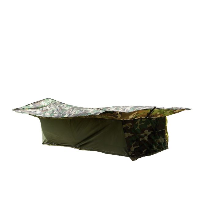 Overnachten in de buitenlucht maar je wilt geen tent mee? Neemdan de 101-INC complete hangmat mee wanneer je voor een meerdaagse wandeltocht, een survival- of bushcraft tocht, met de scouting op stap gaat of gaat kamperen in het bos. De hangmat met overdekking in de kleur Frans camouflage is ideaal om als eagles nest tussen de bomen beschut te hangen. Het overnachten in deze volledige hammock is een belevenis op zich!De hangmat wordt geleverd inclusief een muskietennet en een tarp als tent overkapping en kan als volledige tent om te overnachten gebruikt worden. Een ideale hangmat als je ook regen kan verwachten.