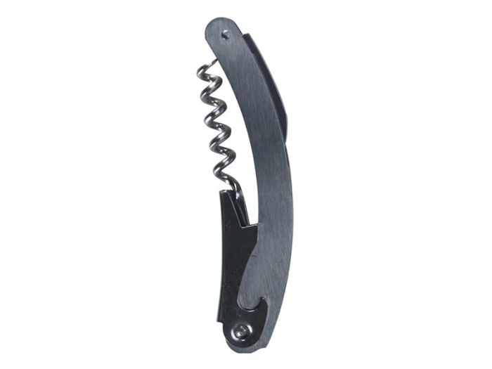 De kurkentrekker is gemaakt van RVS en is uitgerust met een tweetraps hefboom, een flessenopener en een capsulesnijder.