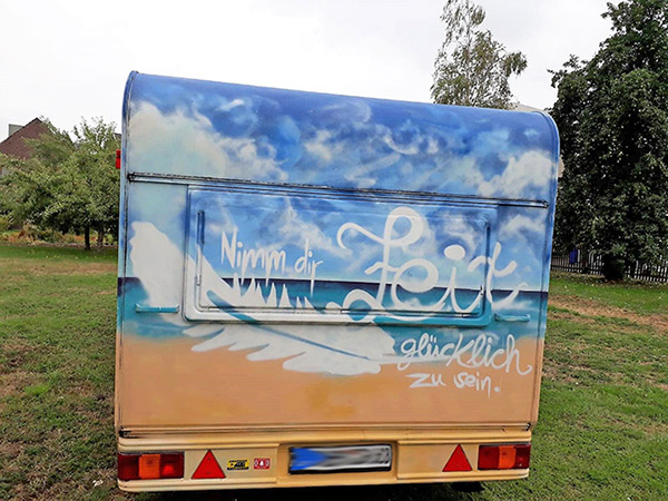 Kevin en Sindija gingen met veel enthousiasme aan het werk om ‘het oude ding’, zoals Kevin het zelf noemt, weer schoon te krijgen. Maar hoe veel ze ook poetsten en schrobden, de caravan werd niet meer echt schoon. "Hij zag er gewoon niet uit", aldus Kevin. "Dus besloten we, de caravan te laten beschilderen. Erger kon het niet meer worden, beter wel. Wij kennen iemand die dit soort dingen doet en die vroegen wij om hulp. Wij hebben hem verteld wat wij er op willen hebben en hij schilderde het. We zijn met het resultaat super tevreden. Het is echt heel mooi geworden en we krijgen dan ook veel positieve reacties! Het valt natuurlijk wel op als je daarmee over straat rijdt."