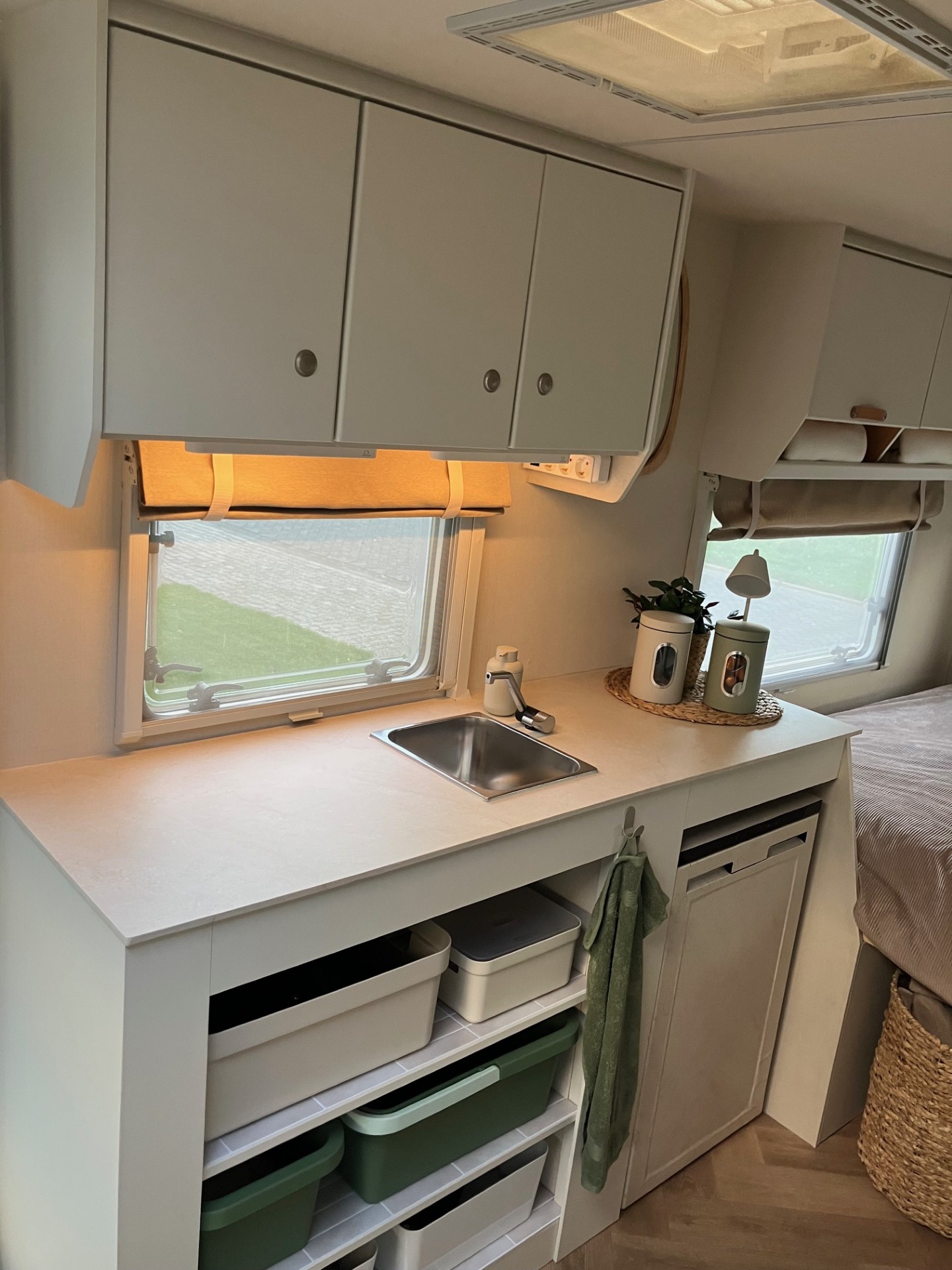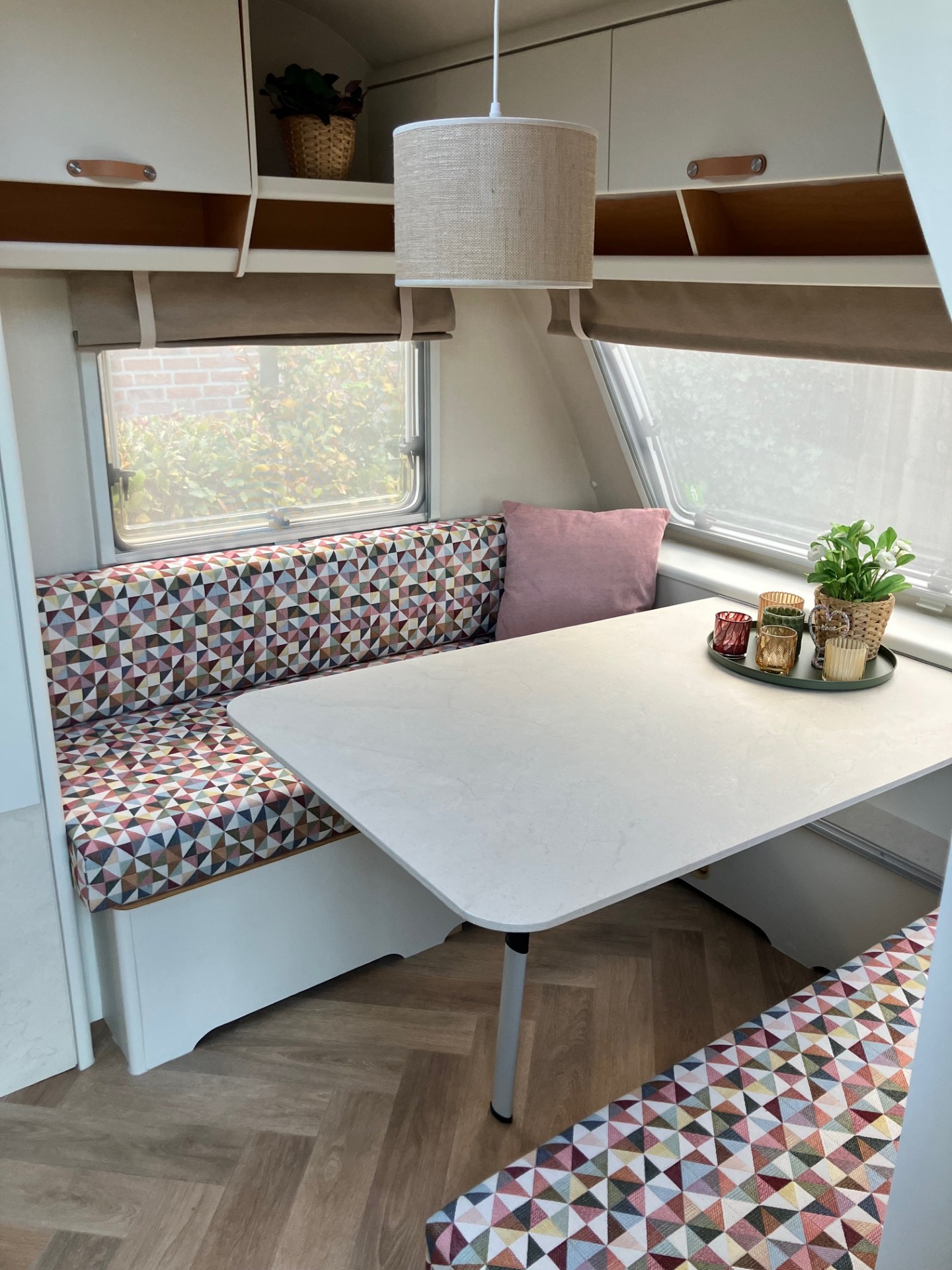 “Inmiddels zijn we zo'n 5 jaar verder en kriebelde het om de caravan opnieuw aan te pakken. In eerste instantie omdat me dat gewoon heel leuk leek om te doen. En met de argumenten naar Sander toe (hij houdt minder van klussen) dat de caravan dan meer toekomstproof gemaakt kan worden, omdat de kinderen de leeftijd krijgen om buiten de caravan in een tentje te slapen, waardoor er binnen ook meer ruimte ontstaat en je minder afhankelijk bent van een voortent (we zijn nu overgestapt op een vaste luifel).”