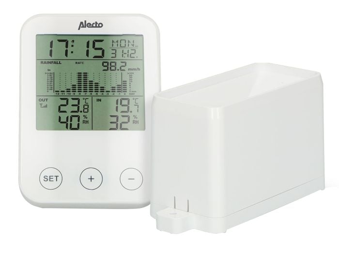 Zowel de binnenunit als de regenmeter werken op batterijen.