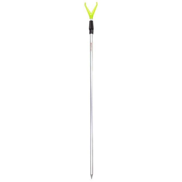 Deze hoogwaardige hengelhouder is gemaakt van aluminium en is dankzij het telescopische systeem uitschuifbaar tot een hoogte van 135 cm. Op de hengelstang is een V-steun met lijninkeping gemonteerd.