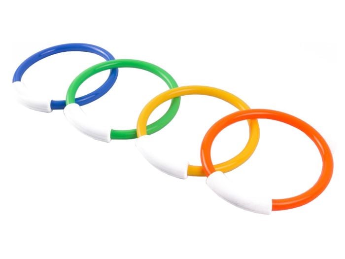 Of je nu een echte waterrat bent of gewoon beter wilt worden in het duiken, deze set van vier kleurrijke ringen biedt urenlang speelplezier in het zwembad.