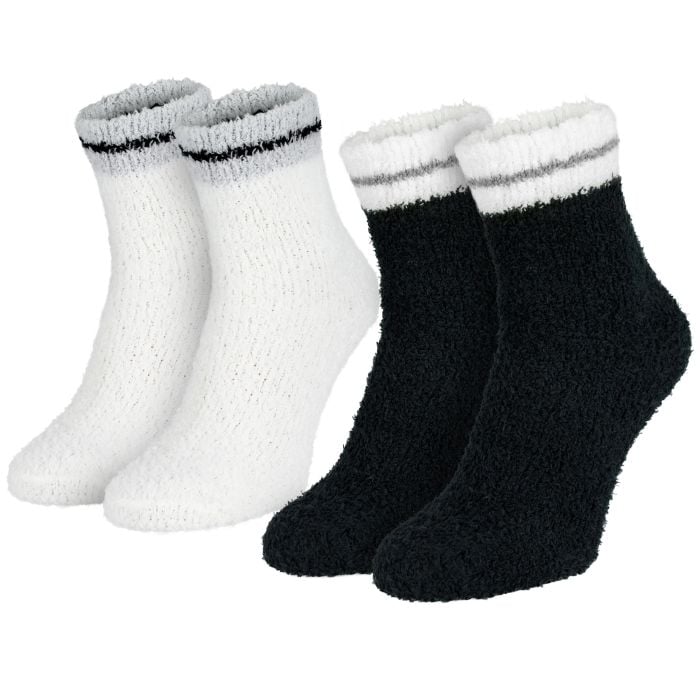 De super donzige pluche sokken passen bij elke homewear outfit en zorgen voor lekkere warme voeten. Dankzij het aangenaam zachte gevoel en de zachte manchetten zijn de sokken ideaal voor gezellige dagen thuis, maar ook ideaal voor yoga, wellness etc. De knuffelige kousen zijn verkrijgbaar in vrolijke kleuren in een set van 2.