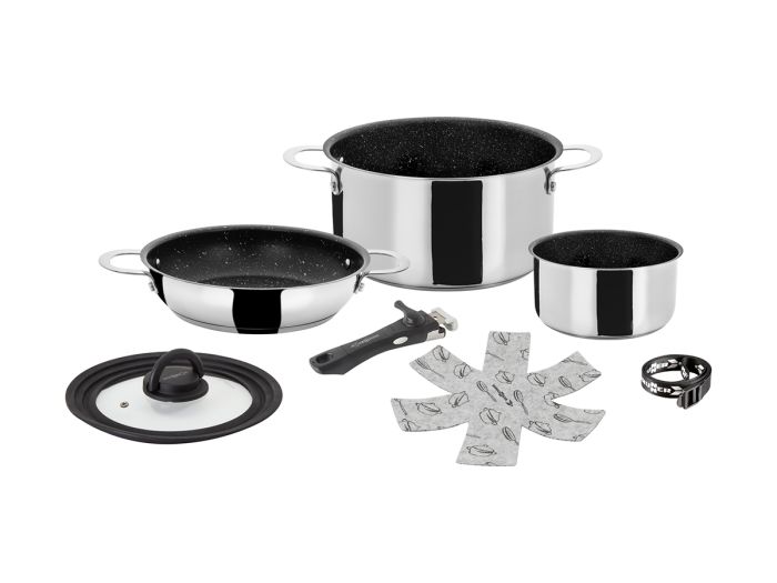 Ontdek de Academy Vacum 5+1 pannenset Ø Brunner; 22 cm, geschikt voor inductie, gas, keramisch glas en elektrische kookplaten