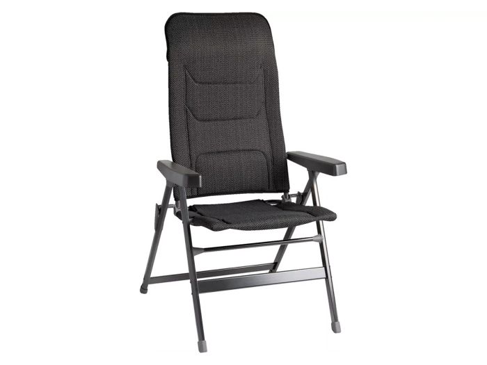 Het gepoedercoate aluminium frame maakt de stoel licht en robuust. Dankzij de praktische vouwfunctie is hij ruimtebesparend op te bergen.