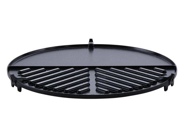 Dankzij het slimme ontwerp combineert deze accessoire een half BBQ-rooster met een halve bakplaat (plancha), ideaal voor gevarieerd koken. De gladde plancha-helft is perfect voor het bakken van groenten, eieren of spek, terwijl het BBQ-rooster uitstekend geschikt is voor het grillen van vlees of vis. Zo bereid je moeiteloos complete maaltijden op één toestel.