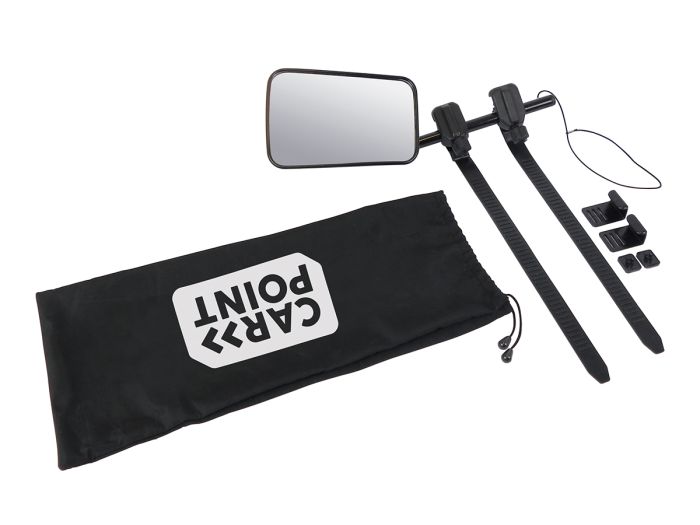 Universele caravanspiegel, past op vrijwel elke auto. Duurzaam en UV-bestendig. Bolle spiegel, voor de bestuurders- en passagierskant. Bevestiging met 2 schroefklemmen voorzien van 2 rubber banden voor extra veiligheid (meegeleverd). In handige opbergtas.
