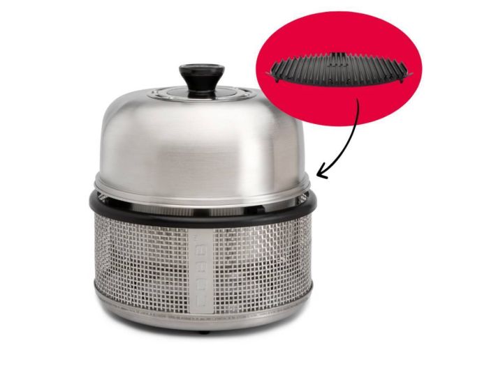 Het unieke aan de Premier Air is dat je met behulp van het draaisysteem onder de knop van de deksel de luchttoevoer kunt regelen. Hierdoor kun je de temperatuur van de COBB verlagen. De mantel van de COBB Premier is gemaakt van roestvast staal. De COBB Premier bestaat uit een mantel, kom, brikettenmandje en deksel. Nieuw aan dit model is het verbeterde brikettenmandje en de meegeleverde grillplaat in plaats van de standaard bakplaat. De grillplaat is gemaakt van aluminium en heeft een PFAS-vrije antiaanbaklaag.