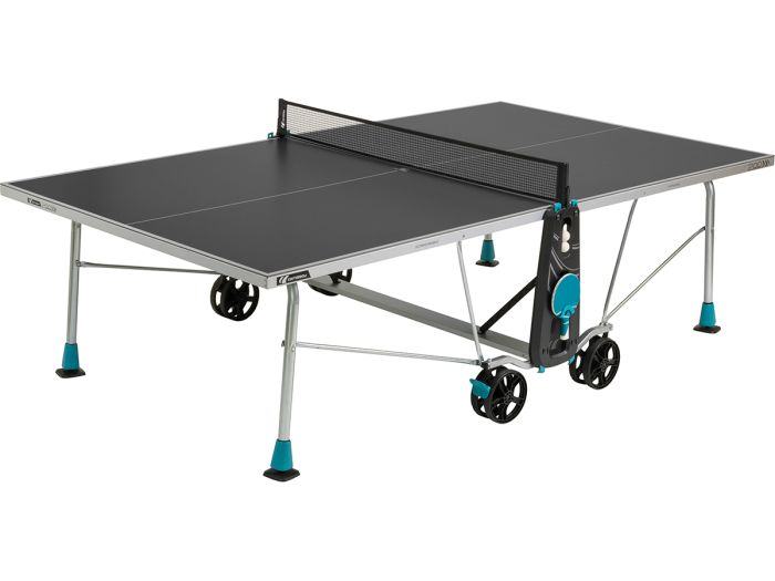 De Cornilleau 200X outdoor tafeltennistafel is met zijn 5 mm dikke speelveld van harslaminaat de perfecte tafeltennistafel voor een vriendschappelijke pingpong wedstrijd met vrienden en familie of een tafeltennis match tussen meer ervaren spelers. Door het innovatieve leveling systeem van de Cornilleau 200X tafeltennistafel is het compenseren van ongelijke grond makkelijker dan ooit. Het mechanisme is namelijk niet direct aan de poot bevestigd, waardoor optillen van de tafeltennistafel niet nodig is. De twee remmen op de wielen garanderen dat de tafel op zijn plek blijft staan terwijl je speelt en ook als de tafel opgeborgen is. Het weer- en schokbestendige speelveld van de Cornilleau 200X outdoor tafeltennistafel heeft een Softmat-afwerking, zodat je niet verblind wordt door de zon. Alle metalen die in de Cornilleau 200X gebruikt zijn hebben een anti-corrosie coating en zijn geselecteerd op duurzaamheid. Het 40 mm hoge frame van aluzink garandeert een stevige grip op het speelveld, waardoor deze mooi plat blijft. Door het Cornilleau Compact Technology vouwsysteem en het eenvoudig te bedienen vergrendelsysteem is de 200X outdoor tafeltennistafel veilig, stabiel, compact en blijven de panelen perfect horizontaal in de speelpositie en perfect verticaal in de opslagpositie. Met de extra grote dubbele wielen verplaats je de Cornilleau 200X outdoor tafeltennistafel makkelijk, zelfs over obstakels en over ruw terrein.