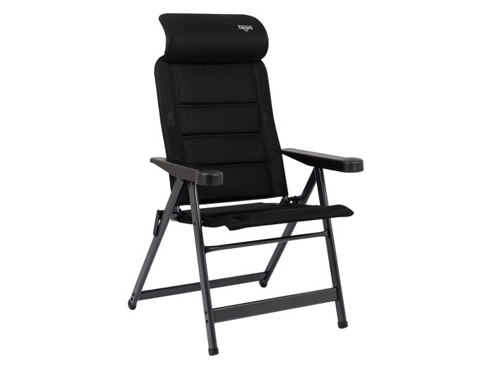 Een unieke en zeer compacte standenstoel. De stoel is uitgerust met een gevoerde stof en een traploos verstelbare hoofdsteun. De comfortabele vulling van deze stof is extra luchtdoorlatend en houdt door de open celstructuur geen vocht vast. Hierdoor kan de stoel tegen een kleine regenbui en droogt het veel sneller dan stoelen met een traditionele schuimvulling. Deze stoel heeft een lagere zit en een kortere rugleuning. Hierdoor is deze stoel uitermate geschikt voor mensen met kortere benen. Biedt maximaal comfort door de in 7 standen verstelbare rugleuning. Zowel de rugleuning als de armleggers zijn ergonomisch gevormd. De stoel is voorzien van een H-frame voor extra stabiliteit. Door zijn unieke ontwerp en de lagere zit is deze stoel zeer compact en gemakkelijk mee te nemen.