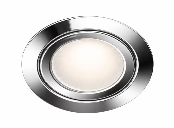 De BBA Dometic Cario inbouwspot - chrome heeft een chromen rand en is eenvoudig te installeren in het interieur van je camper of caravan.