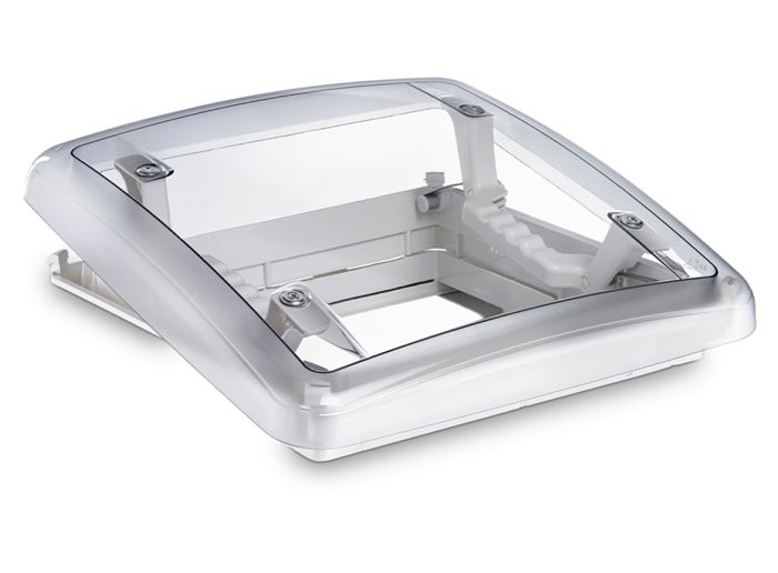 De Mini Heki Style 25-42 mm van Dometic met permanente ventilatie past perfect in dakopeningen met de standaardafmeting 400 x 400 mm en biedt een maximale lichtinval.De kap is dubbelwandig. De openingshoek wordt via het beugelsysteem bepaald. Doordat het dakraam gemakkelijk is te installeren krijg je in een handomdraai meer licht en frisse lucht in je leefomgeving.