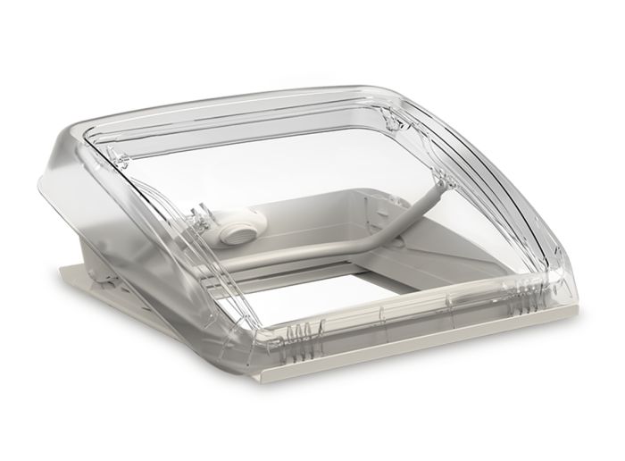De Dometic Mini Heki Style 43-60 mm dakluik - met permanente ventilatie past perfect in dakopeningen met de standaardafmeting 400 x 400 mm en biedt een maximale lichtinval. De openingshoek wordt via het beugelsysteem bepaald. Doordat het dakraam gemakkelijk is te installeren krijg je in een handomdraai meer licht en frisse lucht in je leefomgeving.