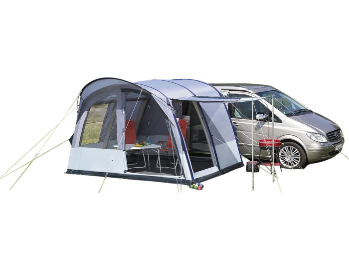 Verover de volledige vrijheid tijdens het kamperen met de dwt Rapid Air II busvoortent, uw betrouwbare metgezel voor onbeperkte flexibiliteit, comfort en bescherming. Deze opblaasbare vrijstaande tent is ontworpen voor bussen met een goothoogte van 180 tot 220 cm en biedt maximale mobiliteit en gebruiksgemak.