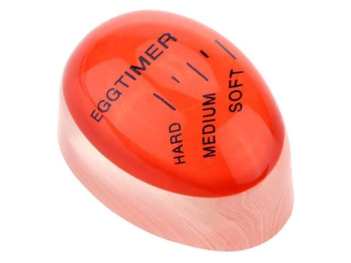 De egg timer is een kunststof ei die je bij in de pan met water legt. Het is eerst rood van kleur, zodra het water gaat koken en er wat tijd voorbij is gegaan verkleurd de buitenste rand van de egg timer. Aan de hand van de streepjes kun je vervolgens precies zien of het eitje zacht, medium of hard gekookt is. Het is eerst even uitzoeken bij welk streepje jij je ei perfect vindt, maar als je dat eenmaal weet kan er geen ei meer mislukken.