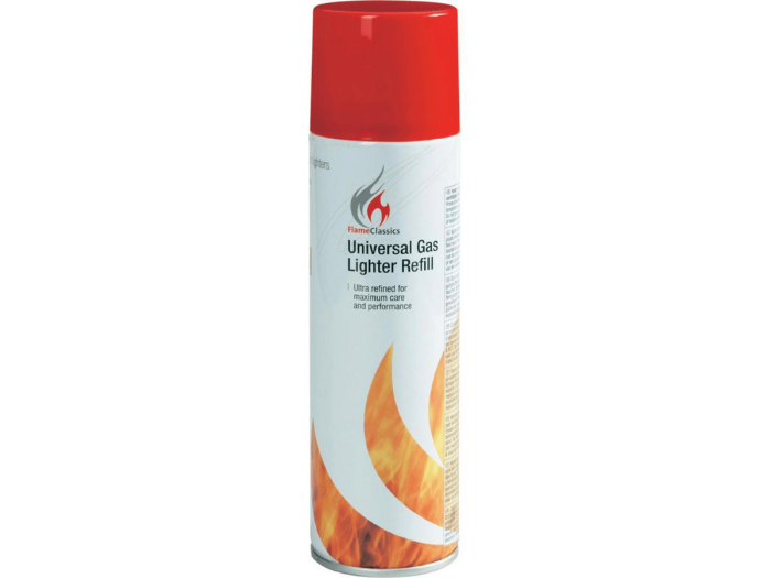 Butaan gasfles van 250ml. Met dit gas kunnen artikelen, zoals bijvoorbeeld een aansteker nagevuld worden. De gasfles wordt geleverd inclusief 5 verschillende vulnippels of hulpstukken om het gas na te vullen.