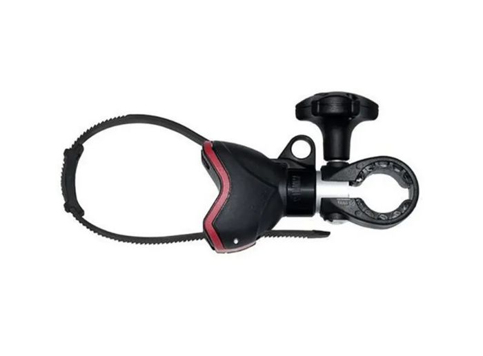 De fietsklem heeft een draaibare vergrendelingsklem met een diameter van 30 tot 35 mm waarmee je hem stevig bevestigt op de drager. Aan de andere kant zit een draaibare fietssteun met een rubberen oppervlak, geschikt voor ronde en ovale buizen van 25 tot 100 mm. De eerste keer draaien vraagt meestal wat kracht, maar daarna laat hij zich soepel in elke gewenste positie zetten.