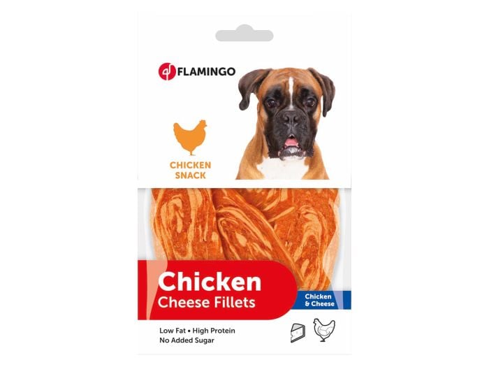 De Flamingo Chicken Cheese Fillets zijn lekkere snacks voor je hond en zijn per 85 gram verpakt.