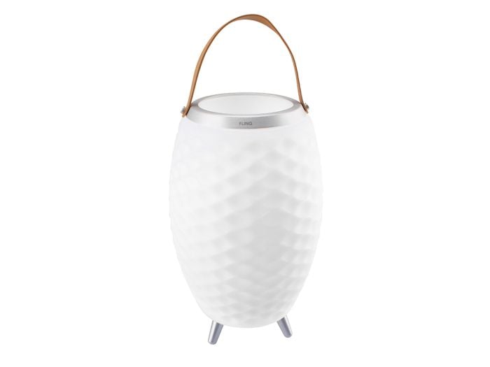 Een draadloze speaker, een ledlamp en een wijnkoeler ineen. Dit is geen droom, maar realiteit met de FlinQ Speaker Lamp Bali. De sfeermaker voor ieder feestje in de tuin of op je dakterras! Speel je favoriete nummers af op de bluetooth speaker via je telefoon. Bedien het ledlicht in veel kleuren met de meegeleverde afstandsbediening. Plaats wat koude ijsklontjes bovenin de lamp en voeg een fles wijn of flesjes bier toe. Je bent dus maar drie stappen verwijderd van een zwoele zomeravond. Dankzij de ingebouwde accu neem je de lamp overal mee naartoe. Het is met recht de coolste speakerlamp van dit jaar! Jouw voordelen Speaker, verlichting en wijnkoeler in een Accu is gemaakt voor lange zomeravonden Spatwaterdicht, waardoor binnen en buiten te gebruiken RVS behuizing waar nodig, voorkomt roesten Nieuwste bluetooth-versie, tot wel 10 meter bereik Verlichting past zich aan op beat van de muziek Inclusief afstandsbediening voor gemakkelijke controle Blikvanger Deze lamp springt in het oog, eist graag de aandacht op. Een blikvanger, zowel binnen als buiten. Door de verschillende lichtprogramma's kan je precies de sfeer creëren waar je naar op zoek bent. Dat doe je eenvoudig met de meegeleverde afstandsbediening. Je kunt daarmee ook de muziek aanpassen - een snelle soundswitch of muziekswitch, de Bali Lamp is er klaar voor! Ritmisch vermogen De lamp heeft iets unieks. Speel je net je lekkere nummer af, dan past het licht zich aan op de beat. De Bali Lamp danst dus gezellig mee met al je gasten en is misschien wel de sfeervolste ritmebepaler die je je kunt voorstellen! Batterijduur Bij de binnen- en buitenlamp zit standaard een oplader meegeleverd. Laad de led lamp voor een lange zomeravond helemaal op en geniet tot wel vijf uur van de muziek via de speaker. Je kunt daarbij rustig gebruik blijven maken van de verlichting, zonder dat je bang hoeft te zijn dat de accu sneller leegloopt. Stevig en sterk De RVS behuizing zorgt ervoor dat de lamp niet gaan roesten na een Nederlandse regenbui. De speakerlamp is IP44 Spatwaterdicht, waardoor je deze ook als tuinlamp goed kunt gebruiken. Het leren handvat is een fijne, designtoevoeging aan de lamp en ook nog eens nuttig. Zo neem je deze draadloze speaker ook makkelijk mee naar het strand, het park of op de boot. Vrijmibo In de wijnkoeler is genoeg plek voor ijsblokjes of ijswater en een goede fles wijn of champagne. Of voor een vrijdagmiddagborrel met wat biertjes. Dit apparaat is na een keer te gebruiken simpelweg niet meer weg te denken! Verpakkingsinhoud Bali Lamp Afstandsbediening Oplader Handleiding Specificaties Batterijduur: 5 uur (bij continue gebruik muziek, bij enkel verlichting 20 uur) Kleurfunctie: RGB en warmwit Dimbaar: Ja Bluetooth-versie: 5.0 Spatwaterdicht: IP44 Materiaal: RVS - Plastic Gewicht: 2500 gram Afmetingen: 270mm x 270mm x 440mm