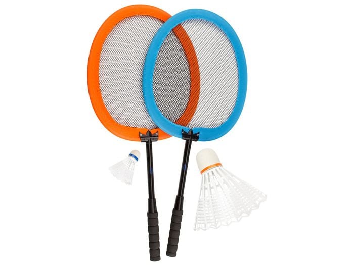 XXL betekent letterlijk extra grote rackets en een extra grote shuttle. Deze badmintonset is ideaal om een keer op een andere manier te badmintonnen of voor kinderen om te leren badmintonnen. Alles heeft een groot formaat, waardoor het overzichtelijk is wanneer je er mee bezig bent. De shuttle is een veel groter doelwit, waardoor die eenvoudiger te raken is. En wil je wat extra uitdaging, gebruik dan de meegeleverde kleinere shuttle.