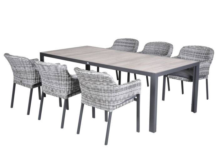 De Hartman Cairo dining Tanger 228 xerix is een 7-delige diningset bestaande uit een de Tanger 228 tafel en 6 Cairo dining stoelen.