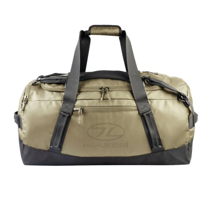 De Highlander reistas Hauler Duffel - 90 liter is een ruime, praktische en erg stevige weekendtas gemaakt van duurzaam 500D Tarpaulin, een must-have voor elk avontuur. Het gebruikte materiaal is zwaar zeildoek en stevig bandmateriaal waardoor de tas gemakkelijk tegen een stootje kan bij het reizen.