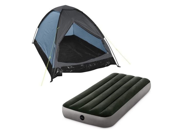 Ga op avontuur met onze compacte 1 persoons tent inclusief luchtbed. Deze tent biedt voldoende ruimte en comfort voor een goede nachtrust tijdens je solo kampeertrip of op een festival camping. Het duurzame luchtbed zorgt voor extra gemak en ondersteuning, zodat je uitgerust kunt genieten van je outdoor ervaringen en belevenissen. Het 1-persoons Intex Dura-Beam luchtbed is zeer veelzijdig en ideaal voor indoor én outdoor gebruik. Hij staat garant voor een goede nachtrust, in elke binnen en buiten omgeving. Het luchtbed is gemakkelijk schoon te maken en compact op te vouwen. De HIXA Tent met Glow in the Dark Scheerlijnen is ideaal voor kamperen en festivals. De tent is 120 cm breed. Door zijn compacte formaat is de tent geschikt om mee te nemen op doorreis of naar bijvoorbeeld een festival. De glow in the dark scheerlijnen zorgen ervoor dat de tent goed zichtbaar is in het donker. Zo struikel je niet meer over de scheerlijnen. De tent is spatwaterdicht en beschikt over een mug/ventilatienet. Bij het product zijn tentstokken en haringen inbegrepen. De tent heeft een afmeting van 200x120x100 cm en een gewicht van 1,25 KG.