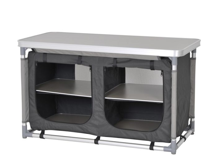 De Hypercamp Barcelona is een lage campingkast die dankzij zijn formaat geschikt is voor gebruik in een tent met lage wanden.