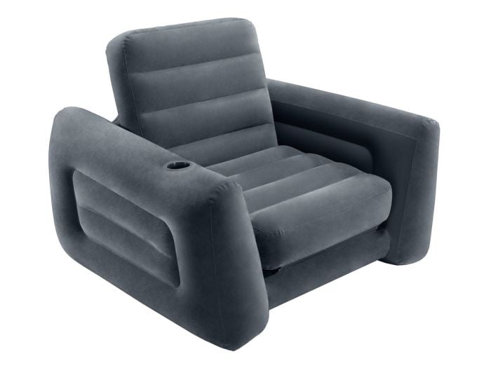 De Intex Pull-Out Chair biedt een slimme 2-in-1 combinatie waarbij je overdag beschikt over een comfortabele opblaasbare stoel en ’s avonds eenvoudig een eenpersoons luchtbed creëert. Een perfecte oplossing voor de camping, logeerbezoek of thuis wanneer je extra zit- en slaapruimte kunt gebruiken.
