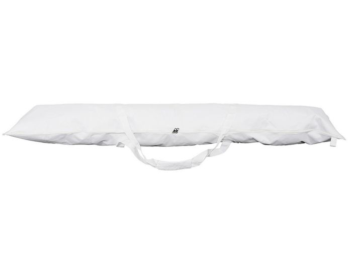 Deze witte skitas is onmisbaar voor tijdens jouw wintersportvakantie. Dankzij de 2 handgrepen aan de tas kun je jouw ski’s eenvoudig naar de gewenste bestemming dragen. Deze handgrepen zijn door middel van klittenband samen te voegen. Daarnaast is de tas waterafstotend en voorzien van 2 insnoerbanden zodat de ski’s extra goed vast zitten. Wanneer jouw ski’s korter zijn dan 165 cm dan kun je de tas oprollen en vastklikken om hem passend voor jouw ski’s te maken. Deze skitas is naast wit ook verkrijgbaar in de kleur zwart.
