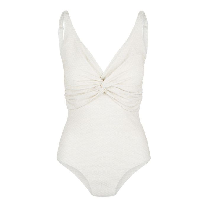 Rise & shine in deze geweldige serie! Deze serie trekt zeker de aandacht door de luxe structuur stof. Dit badkpak heeft verstelbare schouderbandjes en heeft een subtiel knoopdetail aan de voorzijde.