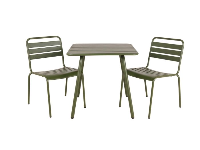 Zoek je een trendy tuinset die betaalbaar is en ook nog eens heerlijk zit? Kijk dan eens naar onze metalen tuinset Max 80 cm in de kleur olijfgroen.Deze tuinset is met zijn compacte maat van 80 cm uitermate geschikt voor de kleinere tuin of dakterras. Als je wat meer ruimte hebt zou je nog twee extra stoelen kunnen aanschaffen. Door de robuuste metalen uitvoering een topper voor scholen, horeca en recreatie!Waarom worden wij zo blij van onze tuinset Max 80 cm olijfgroen?