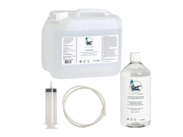 membraclean 4 liter drinkwaterbehandeling camping & camper (1x 1 liter & 1x 3 liter + 1x vulset 100ml) (GP 11,98€/l)
