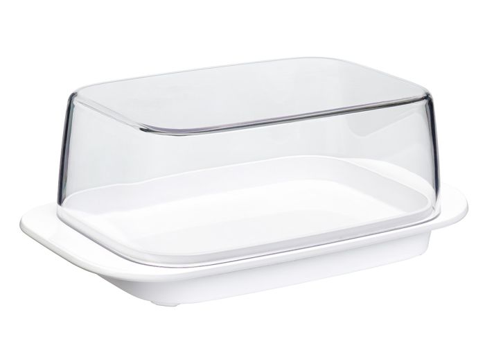 Praktische botervloot met deksel. De witte botervloot zorgt ervoor dat boter hygiënisch bewaard wordt. De botervloot kun je zowel binnen als buiten gebruiken en biedt ruimte aan 250 gram boter.