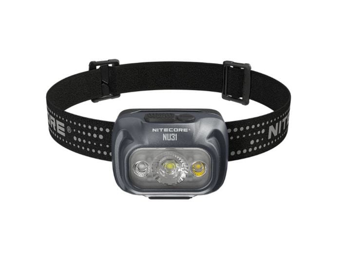 Nitecore NU31 Hoofdlamp Oplaadbaar Slate Grey - De NU31 is het nieuwste lid van de NU-serie van Nitecore en deze hoofdlamp is ideaal voor verschillende outdoor activiteiten zoals trail running, nachtelijke wandelingen, kamperen en meer. Hij is namelijk uitgerust met drie verschillende lichtbronnen en wordt gevoed door de ingebouwde Li-Ion batterij (1800 mAh) die via de USB-C aansluiting opgeladen wordt.
