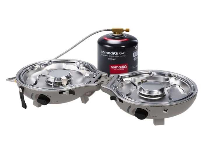 Het kooktoestel wordt geleverd in een recyclebare doos, compleet met een gasslang en handleiding. Enkel een gasflesje (schroefconnectie) is benodigd. Het slimme nomadiQ kooktoestel heeft twee zeer krachtige branders (weinig last van de wind) met twee onafhankelijke temperatuurregelaars en is na gebruik eenvoudig te reinigen.