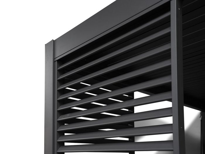 Mirador Louvre Shutter Paneel 4M - 123,5 x 238,25 cm - antracietDit Mirador Louvre shutter paneel is een echte aanwinst voor jouw Mirador overkapping. Met dit shutter paneel zorg je voor meer privacy, zit je beschut tegen de wind en heb je geen last van een laaghangende zon. Door het unieke ontwerp bevestig je het zijscherm volledig geïntegreerd in jouw pergola.Met de meegeleverde handleiding is het monteren van het shutter paneel zeer eenvoudig. De shutters van het shutter paneel zitten vast aan het paneel, deze zijn dus niet te kantelen. Het paneel is gemaakt van aluminium. De panelen worden per stuk geleverd. Je hebt 3 panelen nodig om een kant van 4 meter volledig af te dekken. Deze panelen zij modulair. Dit houdt in dat je de panelen op elke kant kan plaatsen zoals je dit wilt.
