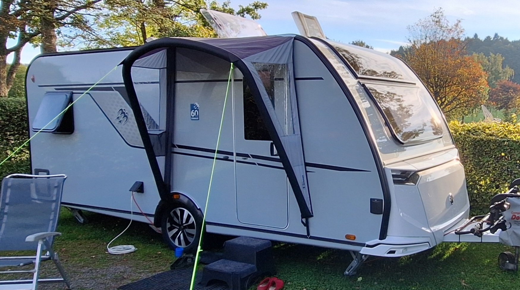 Een aerodynamische caravan is een caravan die aan één kant helemaal schuin afloopt.