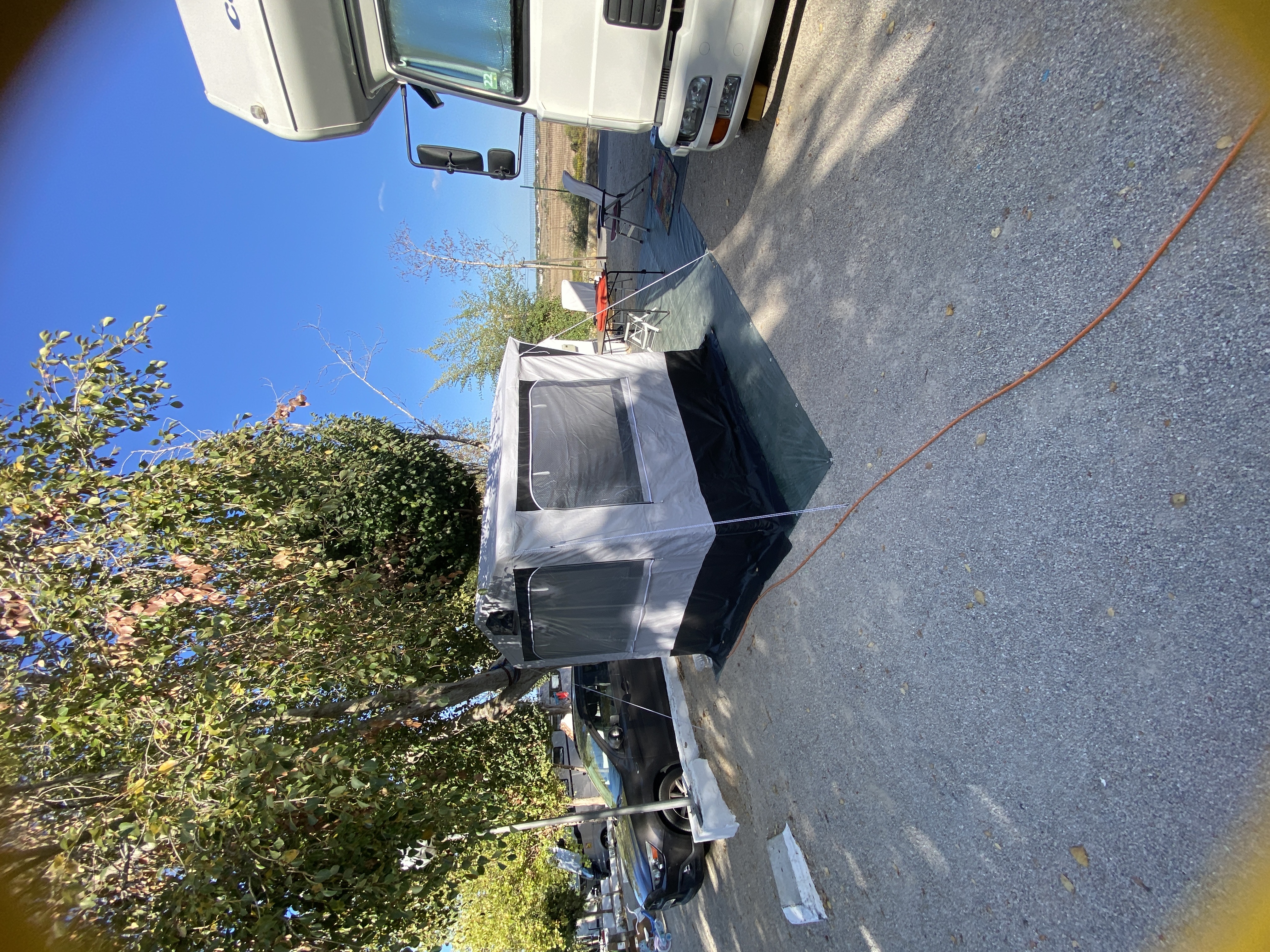 Deze tent, voortent of luifel is voorzien van opblaasbare luchtslangen i.p.v. tentstokken.