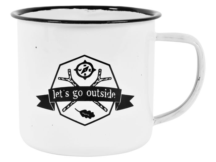 Heb jij voor alles een aparte drinkbeker, mok, glas of wegwerpbekertje? Dat is met deze duurzame emaille mok verleden tijd! Of je hem nu mee neemt tijdens het backpacken, een kampeervakantie met het hele gezin of naar een picknick? Deze mok is te gebruiken voor alles. Koffie, soep, vla, ranja, chocolademelk, bier, wijn en ga zo maar door.. De Let's go outside mok is licht van gewicht, hittebestendig, zeer duurzaam en heeft een inhoud van 300 ml.