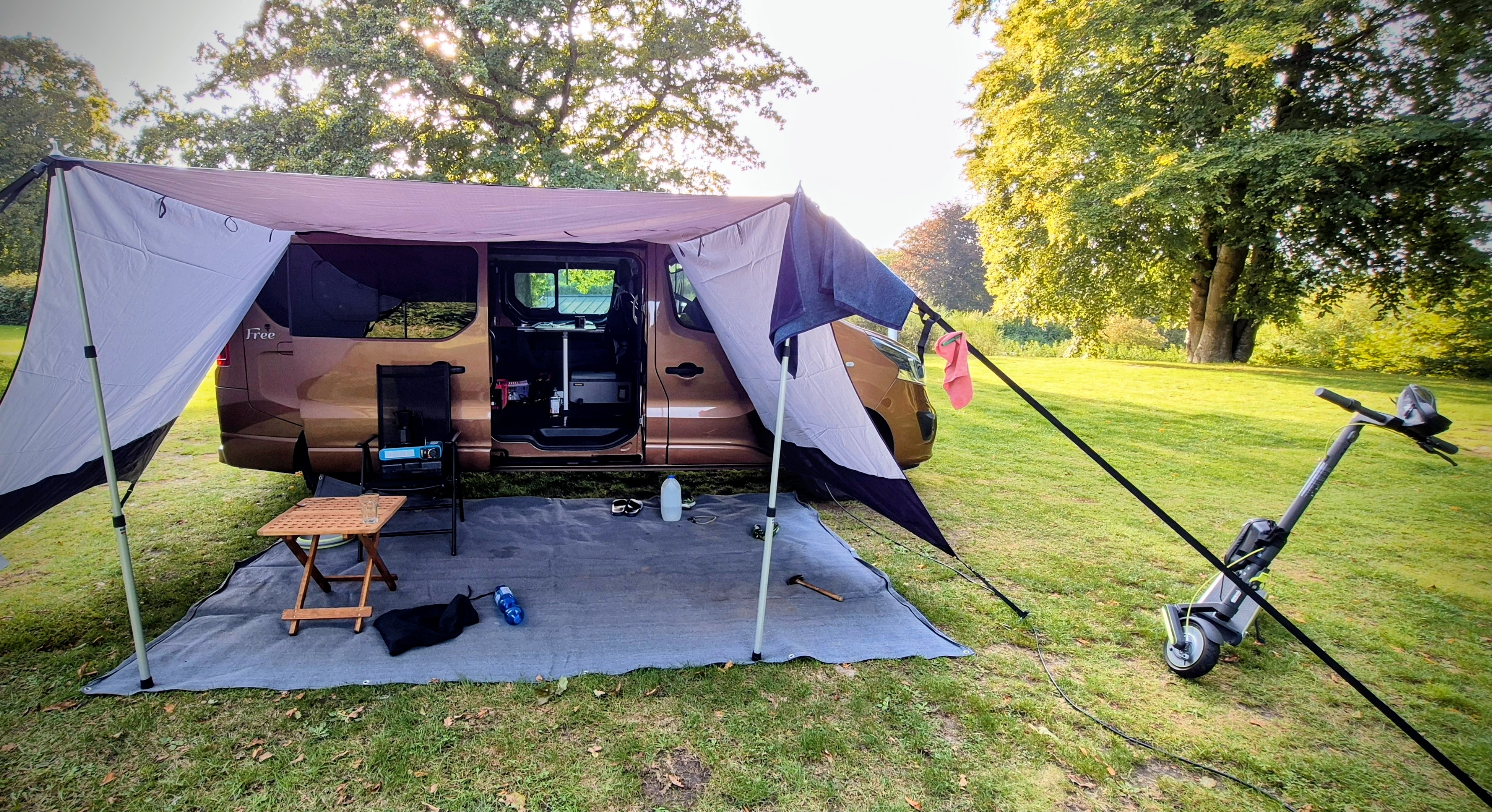 Een vrijstaande tent kan ook zonder camper of bus blijven staan. Dit is vooral handig wanneer je op pad gaat, maar de tent niet wilt afbreken.