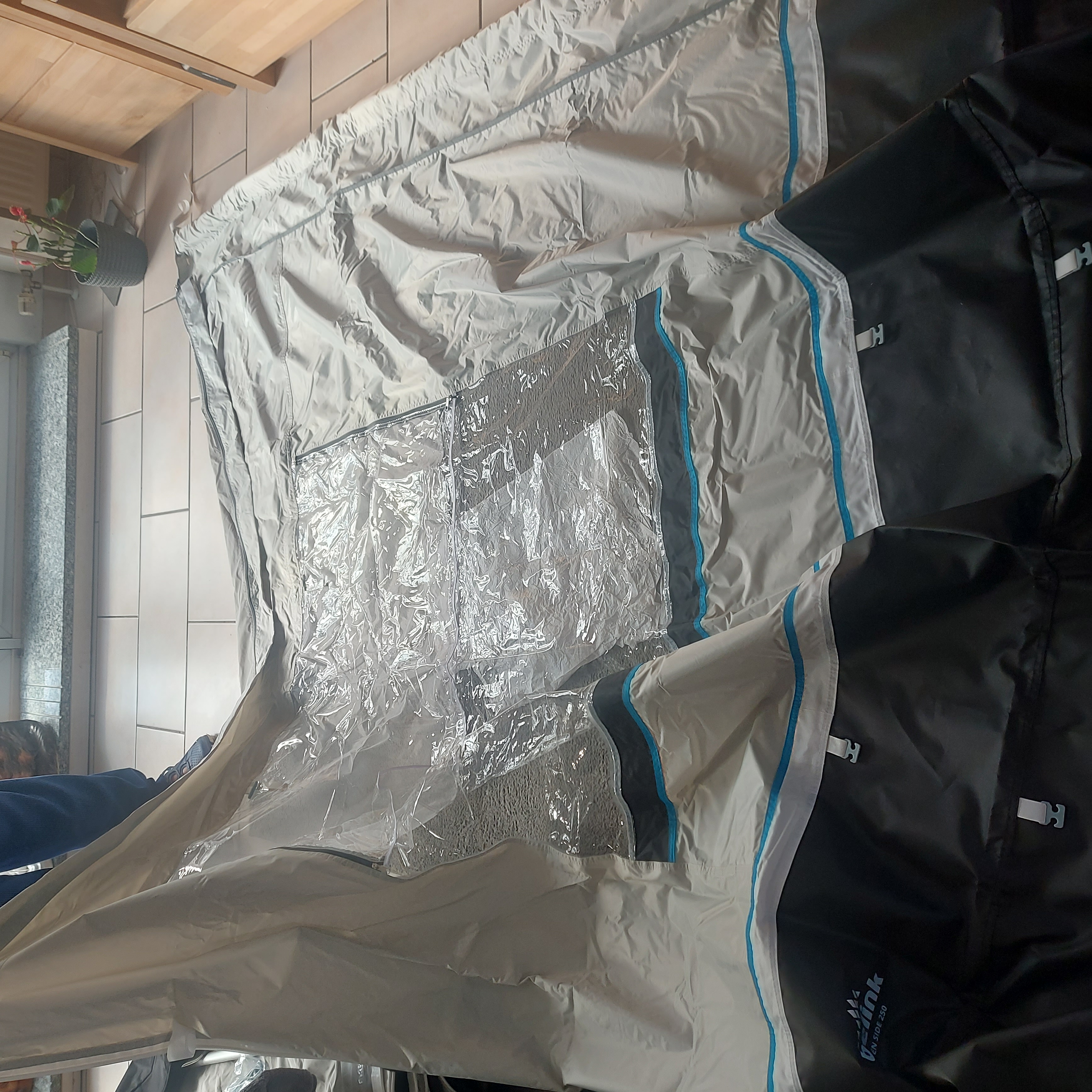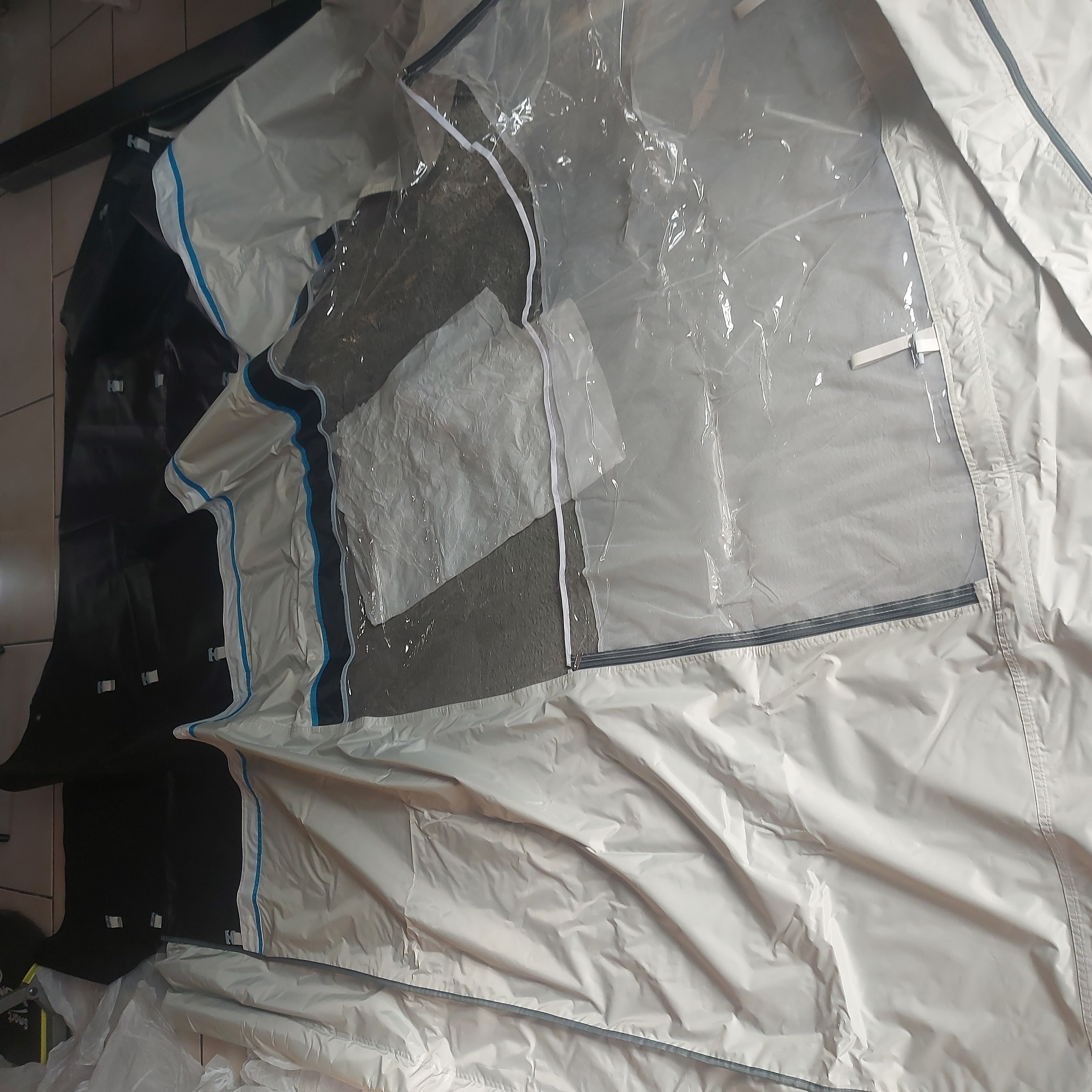 Wanneer een tent een dubbele slikrand heeft vouw je één slikrand naar binnen en één slikrand naar buiten voor extra bescherming.