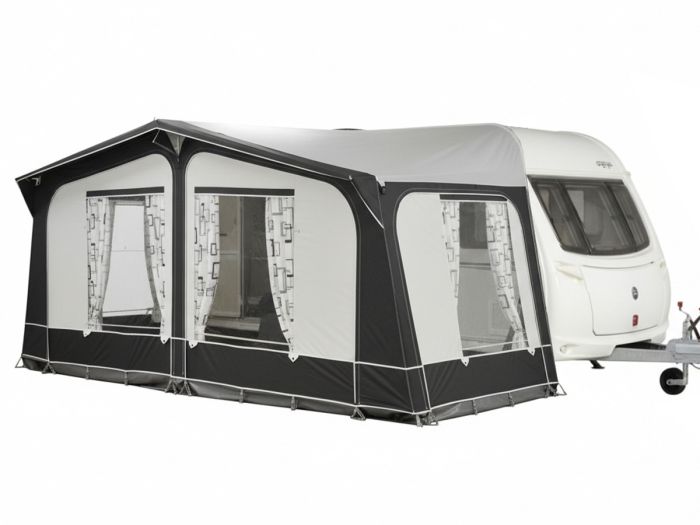De Obelink Salento 240 maat 15 (1001 - 1025 cm) caravanvoortent is een volledige voortent voor caravans met een omloopmaat tussen 1001 en 1025 cm.