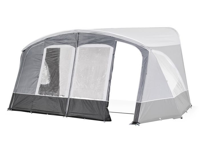De voorwand heeft twee grote ramen, twee ventilatieopeningen aan de bovenzijde, en is uitgerust met twee deuren. Je kunt kiezen om de volledige voorwand te plaatsen, of slechts één van de twee delen in te ritsen.
