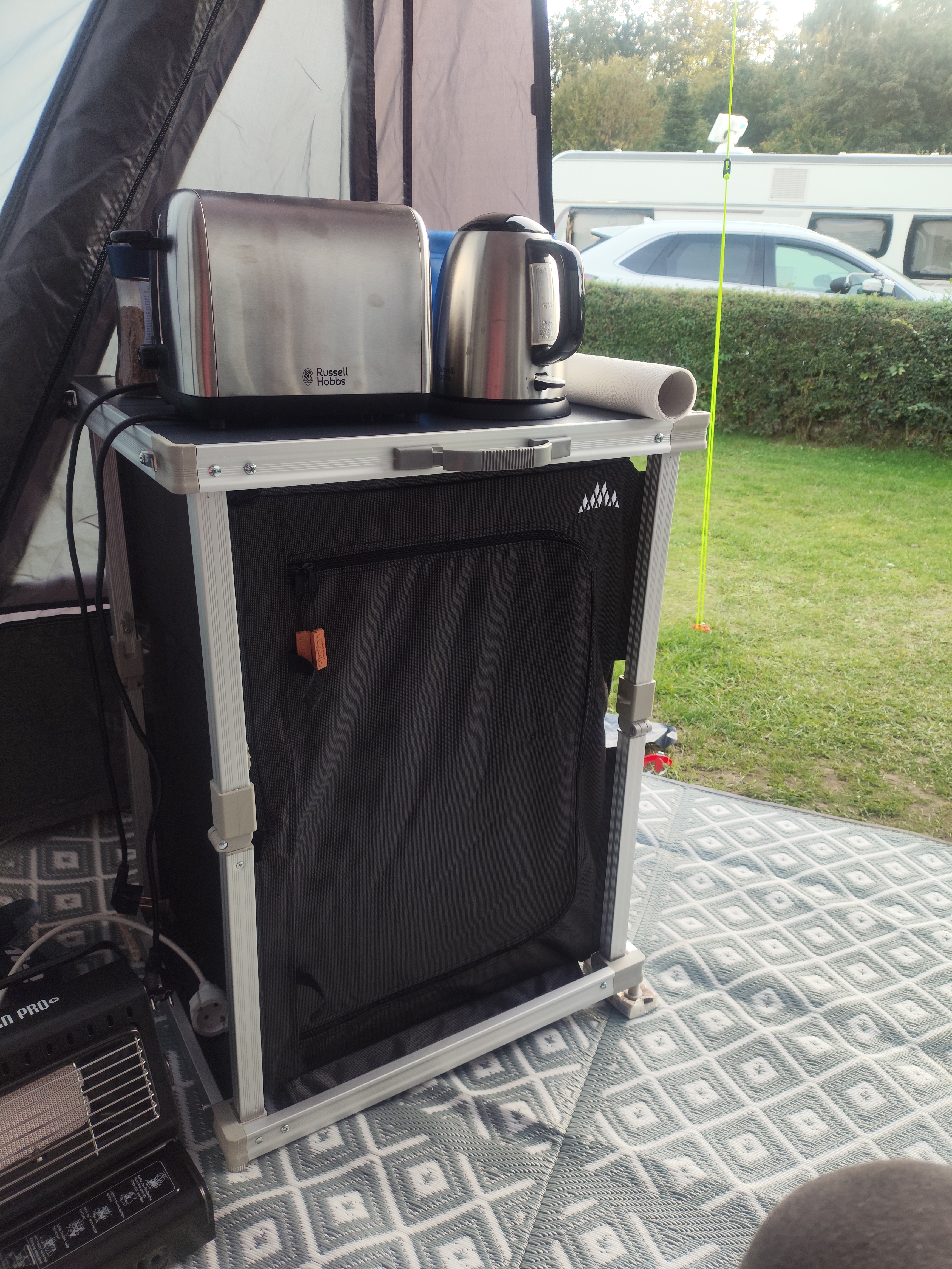 De Obelink Veneto Quick is een stevige campingkast met veel opbergruimte en een bovenblad van MDF.