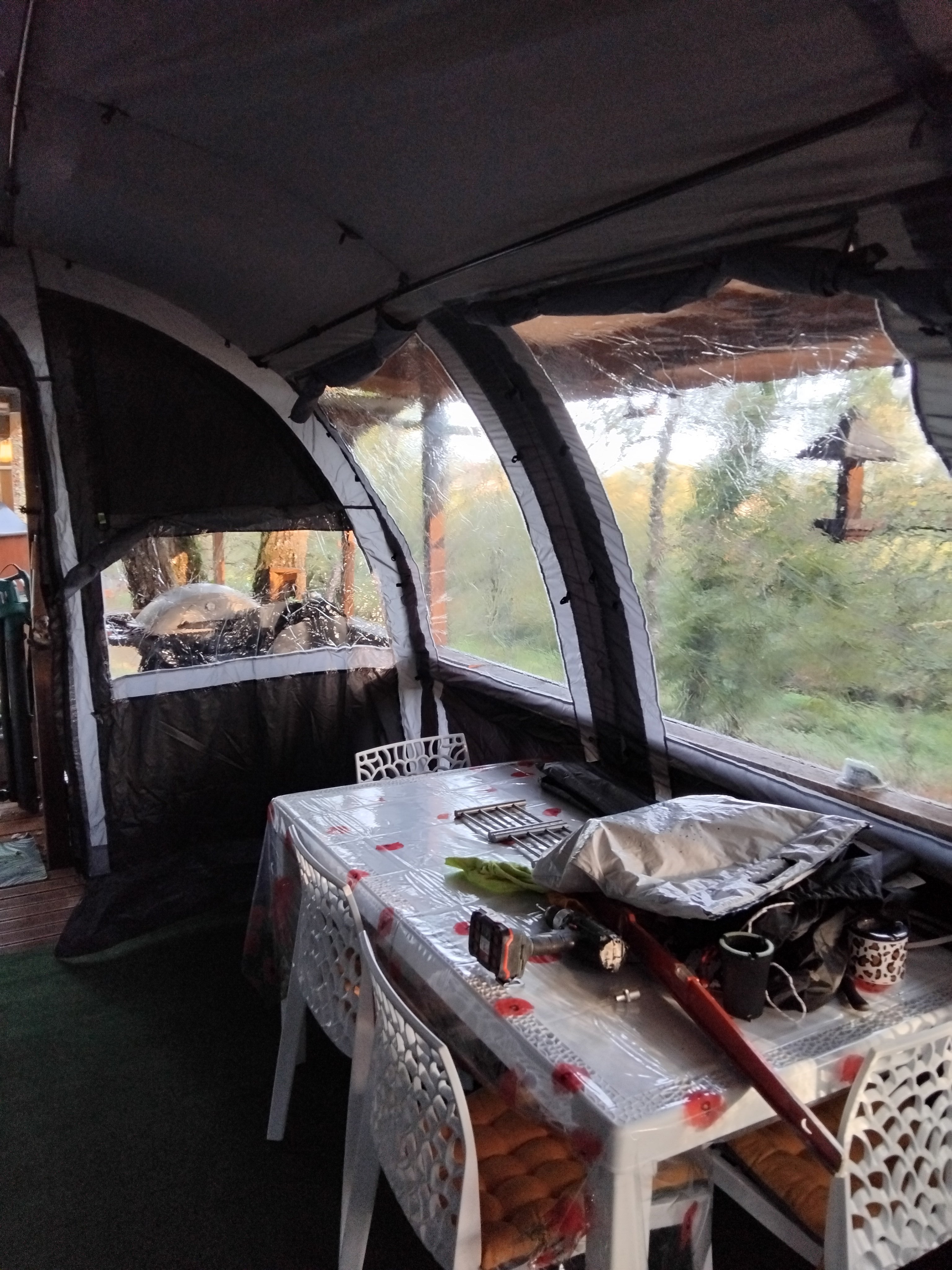 Dit is de rechter zijwand wanneer je met je gezicht naar de tent toe staat.